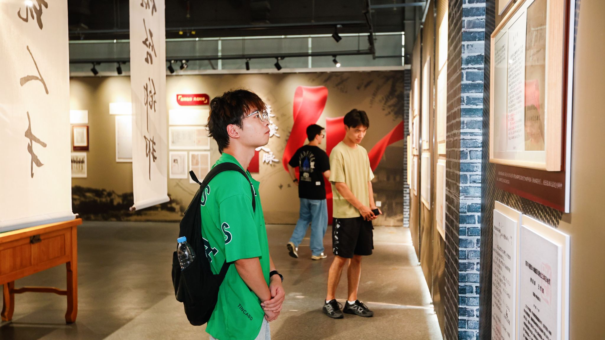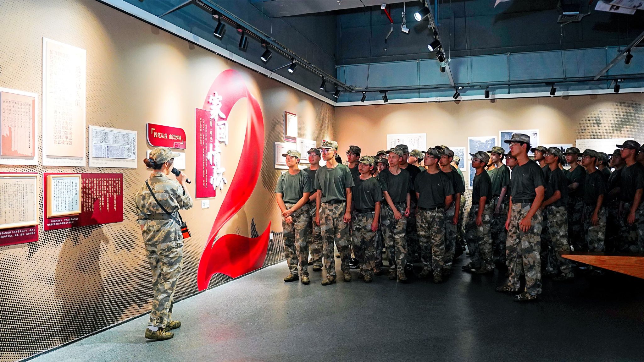 本次展览作为2025级新生入学教育的重要一环,学校组织全体本科新生分批参观,引导大家从历史中汲取精神力量,感悟抗战精神,厚植家国情怀。值得一提的是,展览特别组建了一支由24名新生构成的讲解员队伍,他们在军训期间以高昂热情投入准备,仅用三天就完成系统培训并上岗。这些新生讲解员用同龄人视角和鲜活语言,为参观带来了富有感染力与亲和力的体验。这种“朋辈互育”模式,有效提升了育人实效,让“坚韧”精神在讲述与聆听中生生不息。